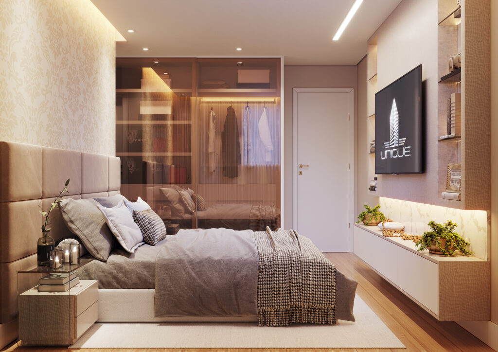 Apartamentos com 3 dormitórios, suíte com semi-closet, rouparia e opção de cobertura duplex ou área privativa.